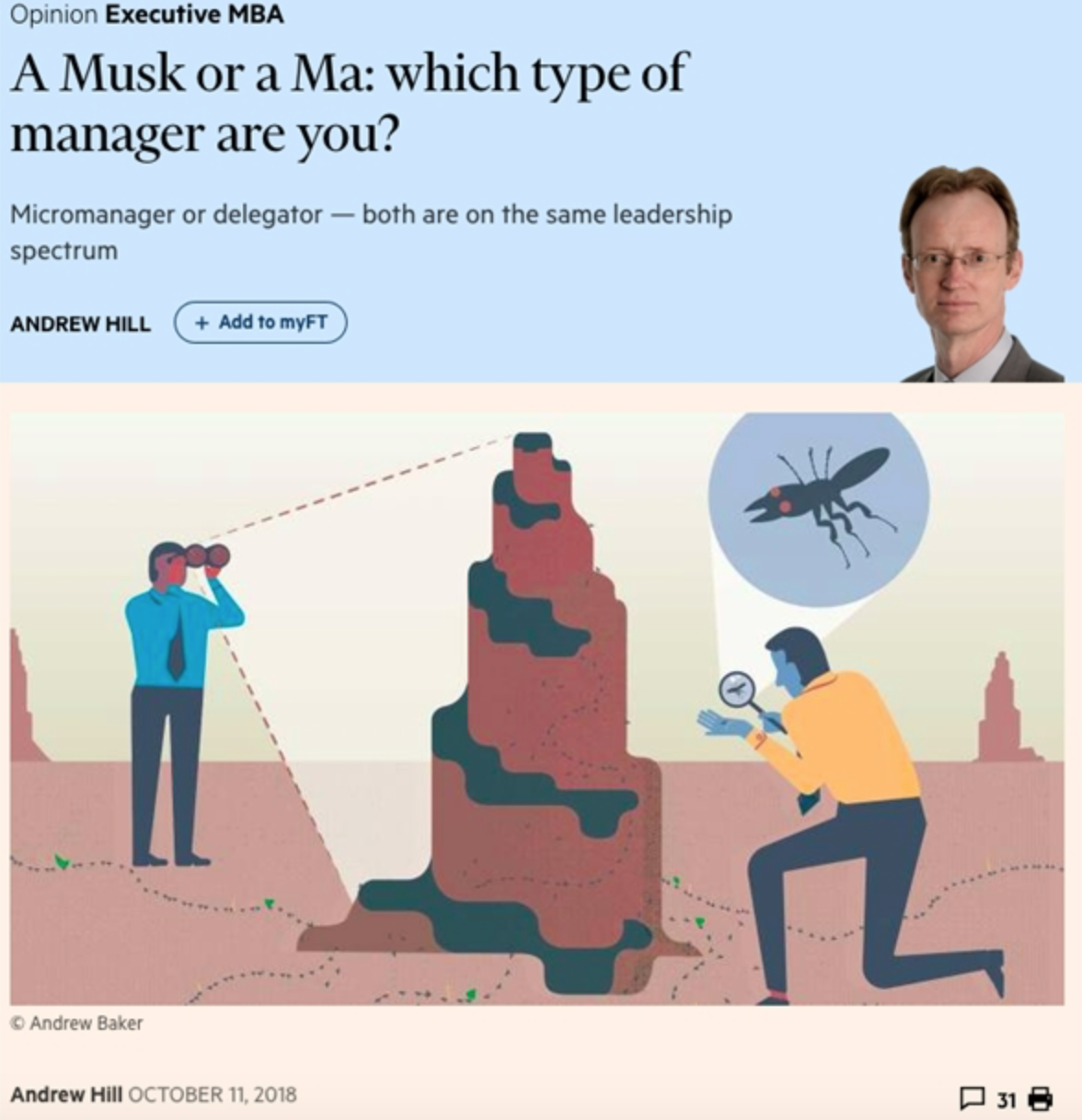 英国金融时报知名的专栏作家安德鲁.希尔,上周日向读者们抛出了一个有趣的话题:马云和马斯克,你是哪种风格的管理者(A Musk or a Ma: which type of manager are you)?