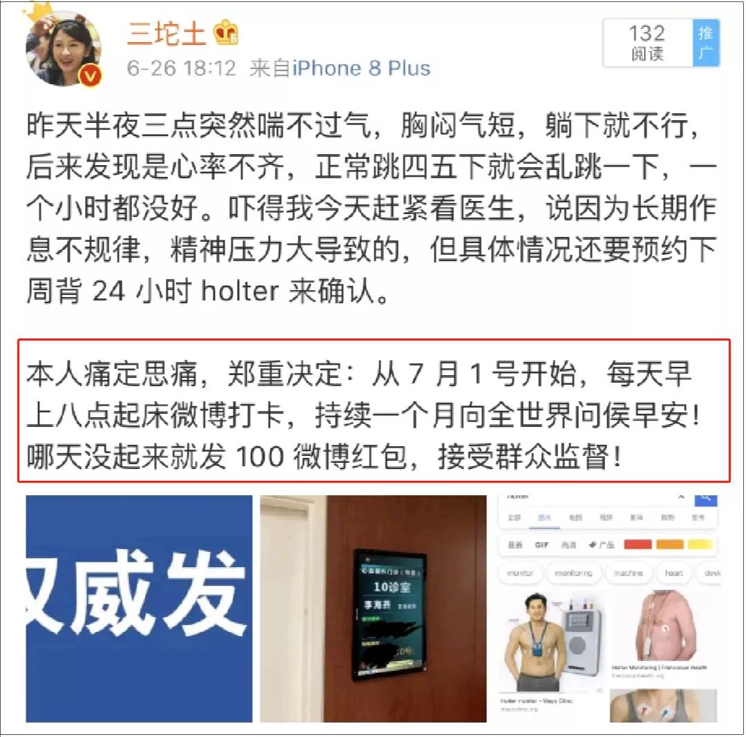 李开复的康复,并不是侥幸。就像《睡眠革命》中提到的那样:睡眠能让你感觉更快乐,不抑郁,不紧张。一个人的身体,会因缺觉而衰败,也会因为睡眠而健康。这个健康,不单指身体,也包括精神状态。曾无意间刷到某美妆博主的微博,为她的经历而触动。4月份,她的一个因长期熬夜被诊断出癌症的叔叔离开了人士,她发了长文悼念。随后,她依然像往常一样,和朋友聚会到凌晨,不到三点绝不睡觉。可是,死神面前,人人都是平等的。两个月后,她也发现了自己身体的异常:喘不过气,胸闷气短,能清晰地感受到自己心脏会偶尔乱跳。之后医院查出,她患有心脏早搏。若病情严重,会产生头晕昏迷的状况,心脏病者更是会诱发心力衰竭。想到叔叔的事例,她彻然醒悟,开始下定决心改变自己——每晚定时上床睡觉,早上八点起床打卡。