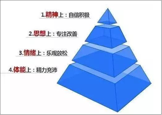 真正的成功人士不会做忙碌的附庸品。他们不会让工作侵占他们的睡眠,相反,正是因为充足的睡眠,才让他们时刻保持着充沛的精力,在每一个选择面前做的出色且决断。精力管理创始人吉姆·洛尔和托尼·施瓦茨曾说:金字塔底端是体能,往上分别是情绪、思想和精神。