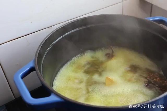 再来做个简单的调料水,我也倒了少量的水,加入花椒、八角、桂皮、香叶、小茴香、生姜片,干锅盖,大火煮,开后再转小火10分钟左右,然后往调料室。里面加入盐和鸡精。现在咱们调料水就好了,倒入碗里晾凉备用。锅里倒入多一些香醋,大火烧开后关火。这会锅里的面水沉淀好了,把。再把沉淀的面水搅拌均匀。然后用过滤网过滤一遍。把过滤出来的面疙瘩倒掉,然后往盆里加入小勺盐,小勺的碱搅匀。舀一勺搅匀的面水,倒进凉皮。蒸出来的凉皮才会薄厚均匀。放锅盖,用大火蒸两分钟。