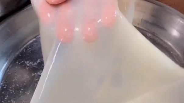 2、冷皮一定要用强火蒸,而且要盖上。否则,糨糊中的水分会流失,冰皮口感硬,容易干裂,不易从盘子上剥落。