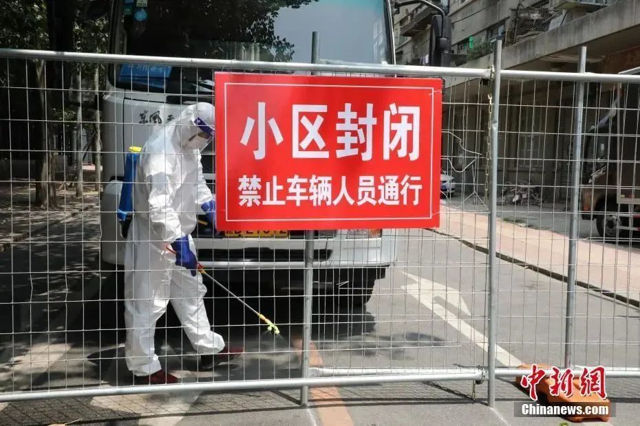 资料图:工作人员在某小区门前进行消杀。中新社记者 杨毅 摄